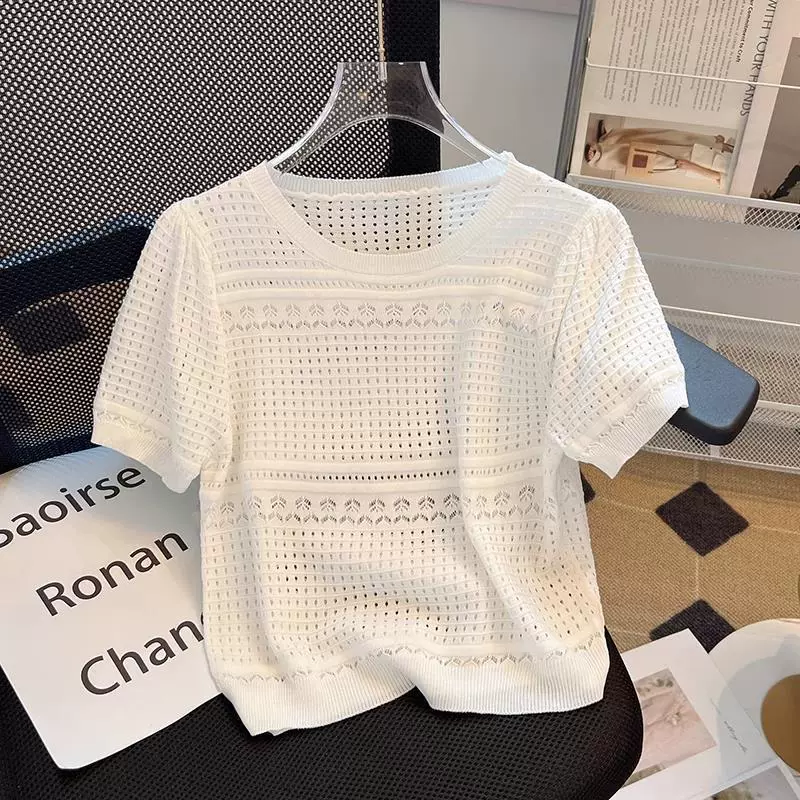 Xiaoxiang Fengbing Silk White Reck Neck Sweater Short lebed