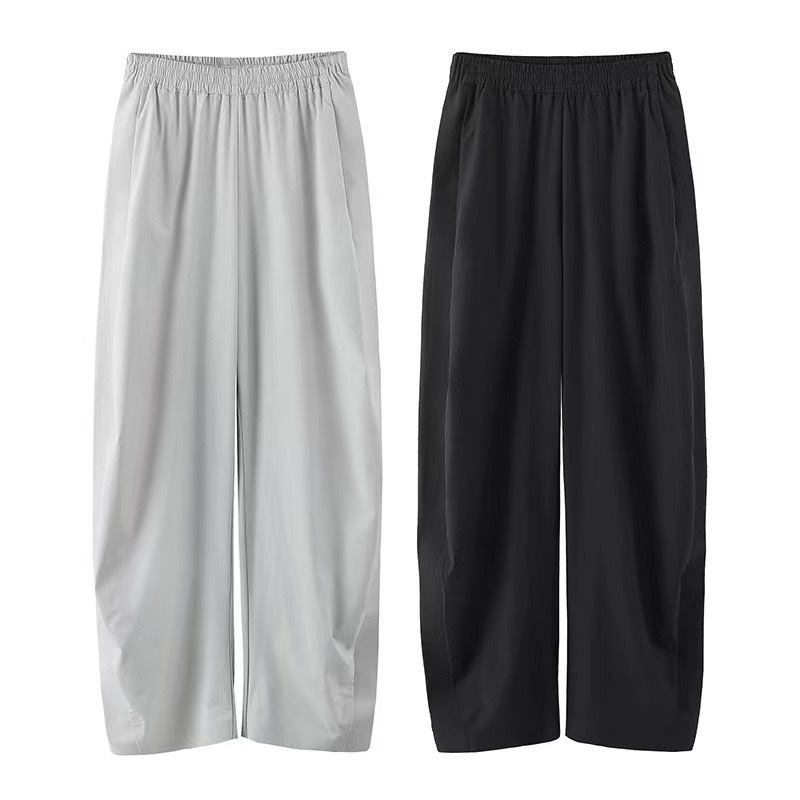 السراويل الحرير الجليد المرأة الصيف رقيقة شخص صغير تسع نقاط السراويل 2024 نمط جديد متوهج واسعة الساق عادية مستقيم الساق عرق السراويل
