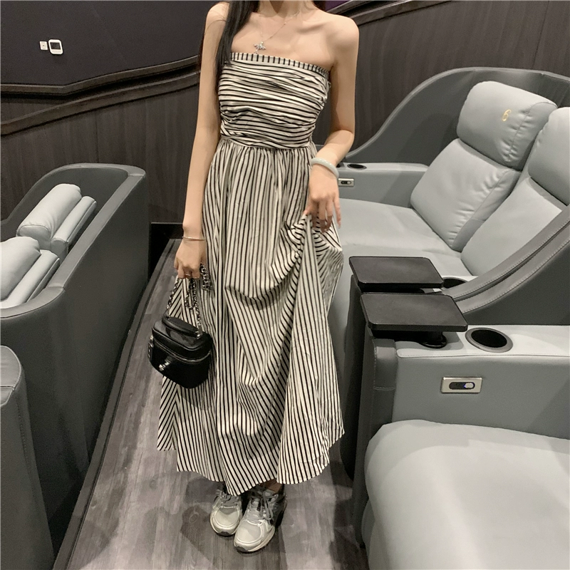 فستان صيفي مخطط مطوي بتصميم أنبوبي علوي