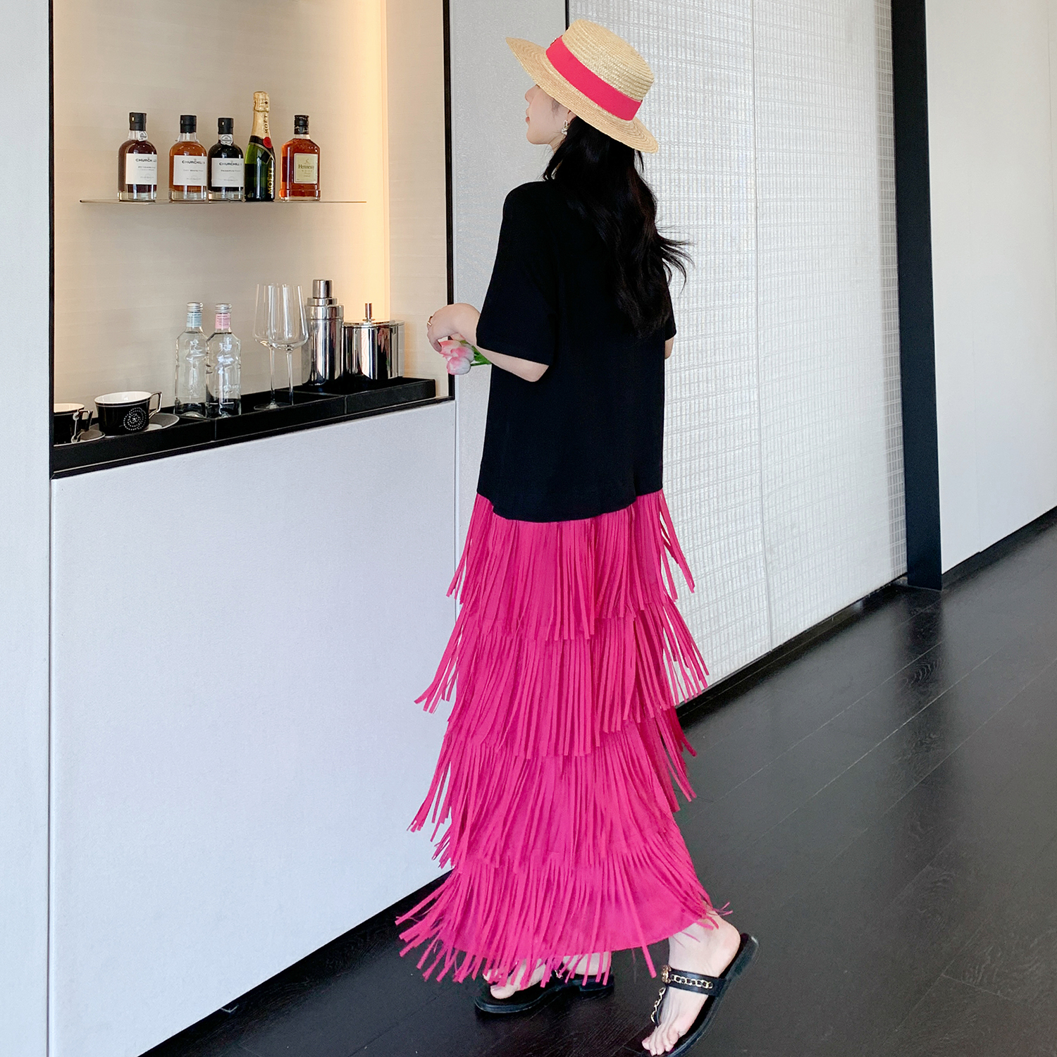 الصناعات الثقيلة شرابة الصيف حجم كبير السائبة تي شيرت كعكة تنورة
