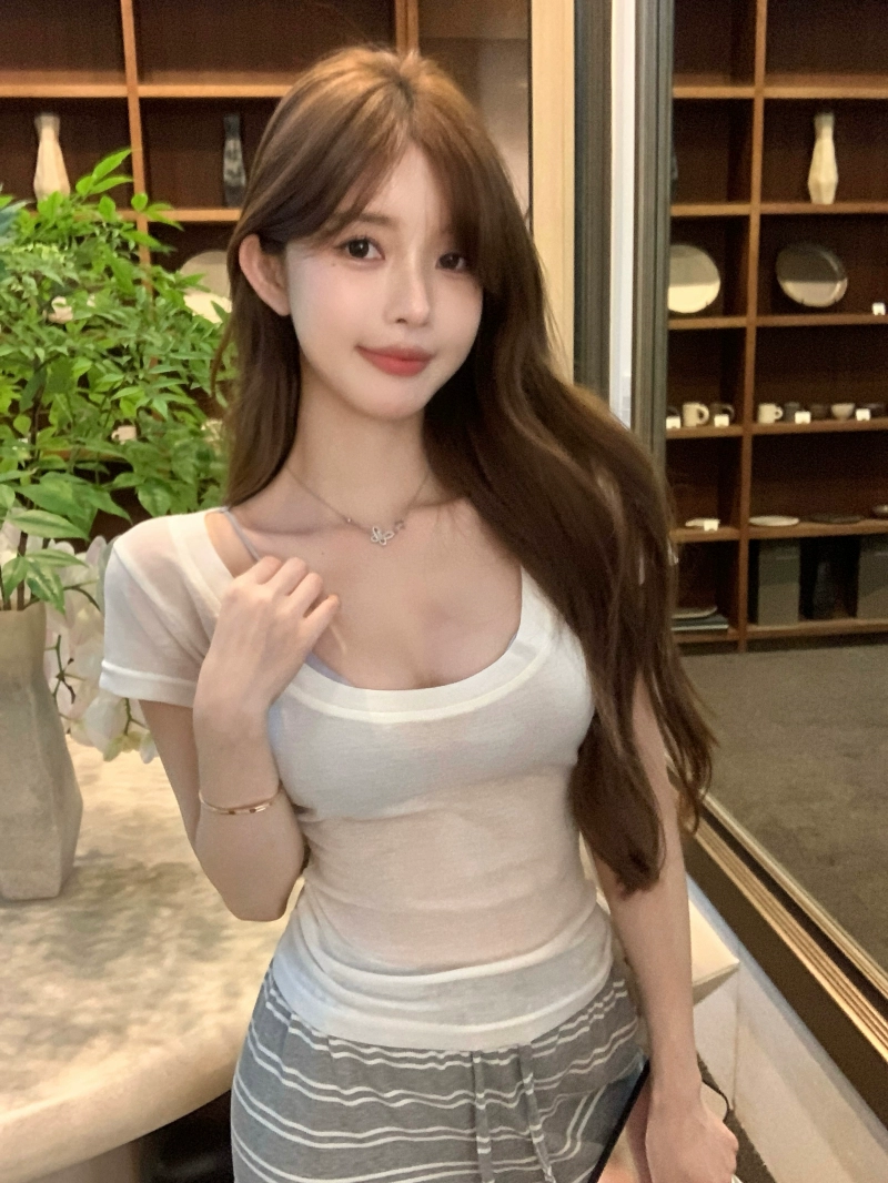 تي شيرت رفيع في الصيف الصيفي النحيف أبيض قصير