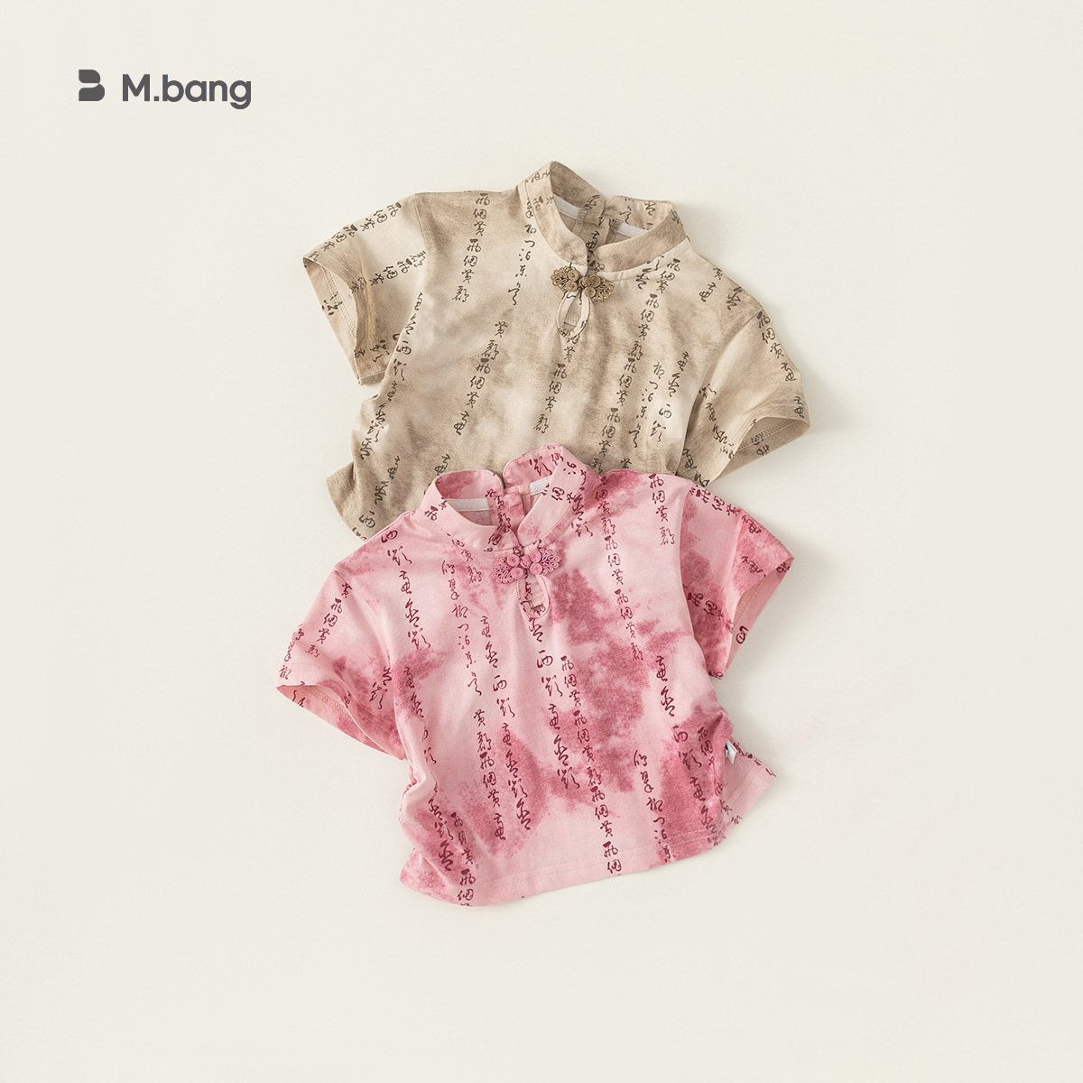 Babycity الفتيات تي شيرت قصير الأكمام جديد جديد النمط الصيني مشبك أعلى الفتيات الصيف النمط الوطني تي شيرت XY24191