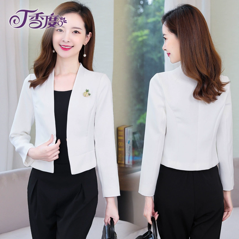 سترة صغيرة عصرية ومتعددة الاستخدامات لربيع 2024 للسيدات جديدة نحيفة وقصيرة بيضاء لباس خارجي رفيع بدلة صغيرة