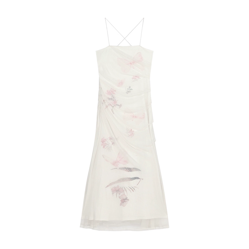 فستان بحمالات على شكل فراشة صيفي شبكي مثير بدون ظهر