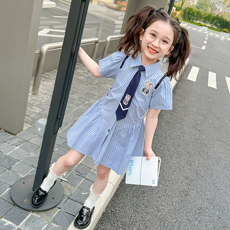 فستان قميص على طراز الكلية صيفي للفتيات على شكل أرنب