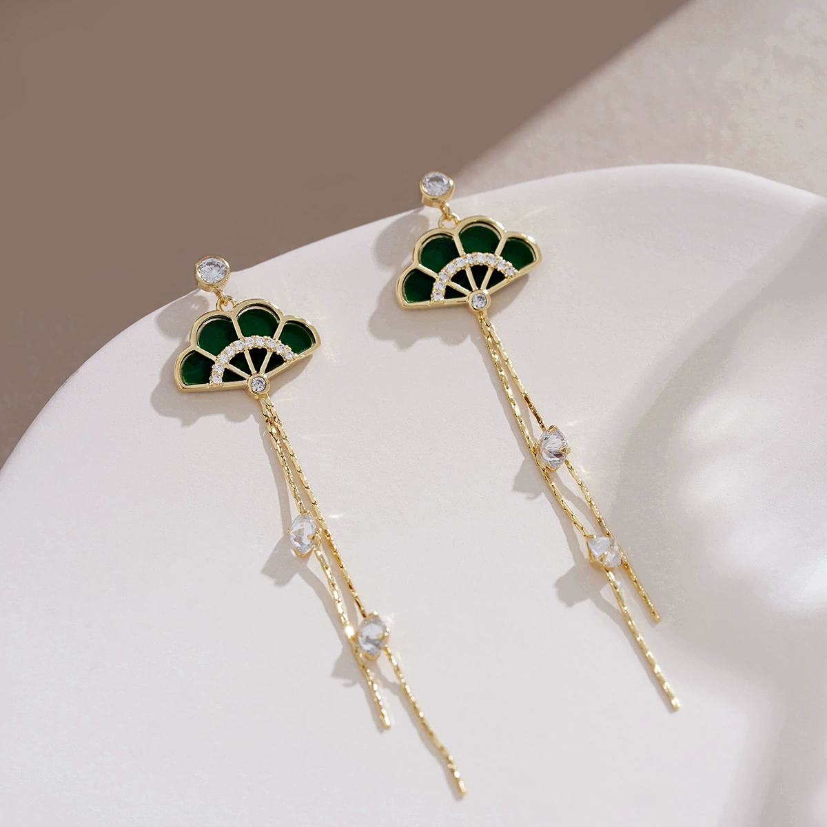 مناسبة لأقراط شيونغسام على شكل مروحة طويلة شرابة طويلة متقدمة ريترو الفرنسية هيبورن رياح أقراط سوبر خالدة
