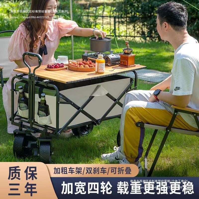 عربة التخييم المحمولة قابلة للطي في الهواء الطلق عربة نزهة عربة مخيم مقطورة سحب قضيب الجدول متعددة الوظائف
