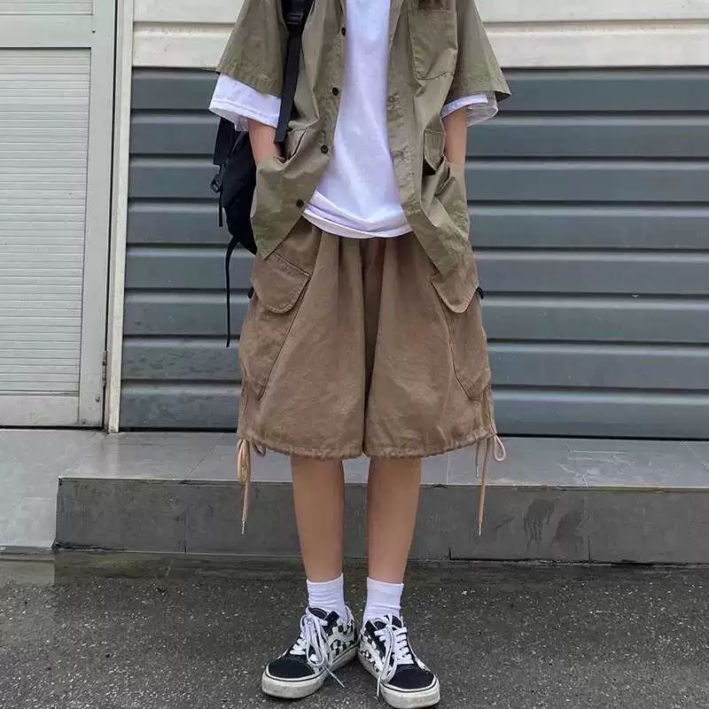 صبي كاكي شورت صيفي واسع الساق على الطراز الياباني