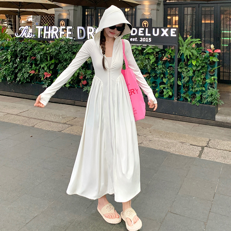 الصيف ملابس الحماية من الشمس المرأة 2024 جديد الحرير الجليد الأشعة فوق البنفسجية طويل كامل الجسم إصلاح ملابس الحماية من الشمس الخصر مغلق قميص معطف على شكل ثوب