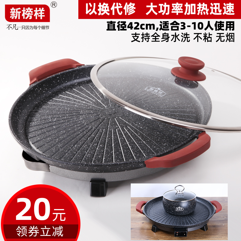 شواية كهربائية منخفضة الدخان على الطراز الكوري، لوحة شواء كهربائية غير لاصقة، متعددة الوظائف، شواية باربيكيو منزلية، ماكينة شواء مستديرة، وعاء الشواء