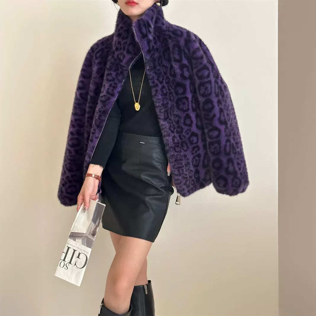 صديقة للبيئة السمور طوق سستة ليوبارد الكتف طباعة تقليد المنك معطف رفيع المستوى الشعور سيران السمور معطف دافئ جديد لفصلي الخريف والشتاء