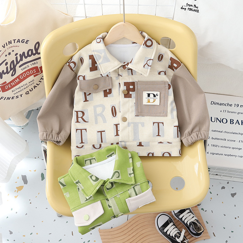 ملابس أطفال ربيعية وصلت حديثًا لعام 2024 سترة صوفية مطبوعة كاملة بأحرف الأبجدية سترة على الطراز الكوري بأكمام طويلة للأولاد والبنات عصرية