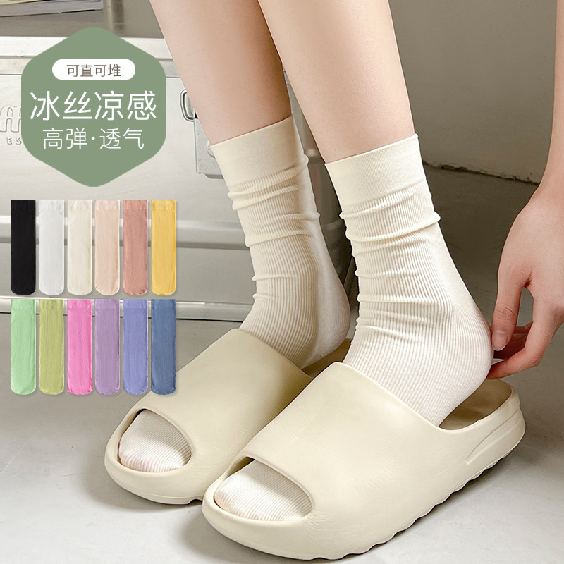 جوارب كومة بيضاء للأطفال صيفية رفيعة واسعة الفم جوارب ثلج بالجملة من الحرير الجليدي جوارب أنبوبية jk يابانية رائعة للتنفس