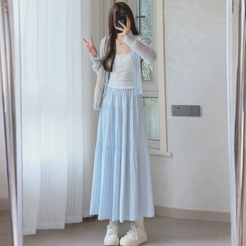 تنورة طويلة قابلة للتنفس باللون الأزرق للربيع والخريف والصيف مع أرجوحة متأرجحة