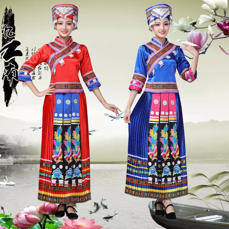 جديد يي زي مياو زي الأقلية العرقية زي الإناث ياو العرقية التطريز مطوي فستان الإناث