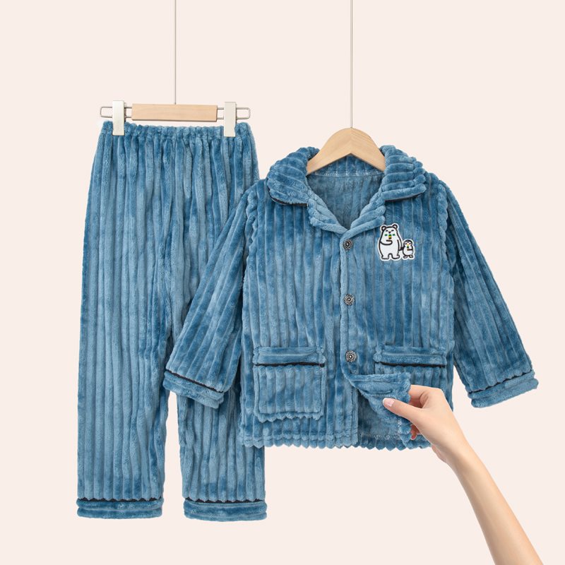 الخريف والشتاء الأطفال منامة الموسم الفتيان والفتيان الشتاء ملابس المنزل الأطفال المرجان الصوف سميكة الفتيات الفانيلا دعوى