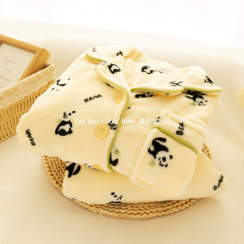 “باندا بامبو” بيجامة مخملية مرجانية للنساء لشتاء 2024 مجموعة ملابس منزلية شتوية مخملية سميكة جديدة