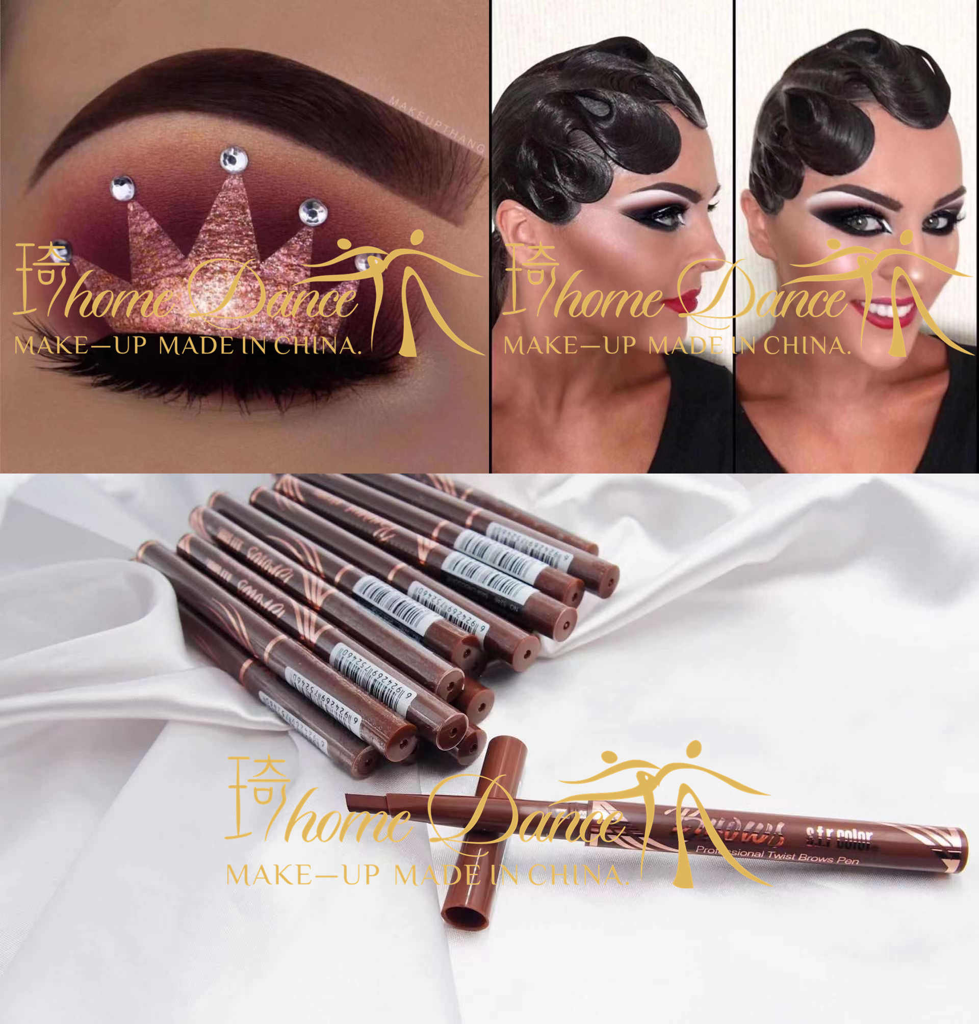 لقطة حقيقية لقلم الحواجب البني للرقص اللاتيني الاحترافي المقاوم للماء، مكياج الرقص القياسي الوطني، قلم الحواجب الثلاثي غير الملطخ، مكياج المسرح الحديث