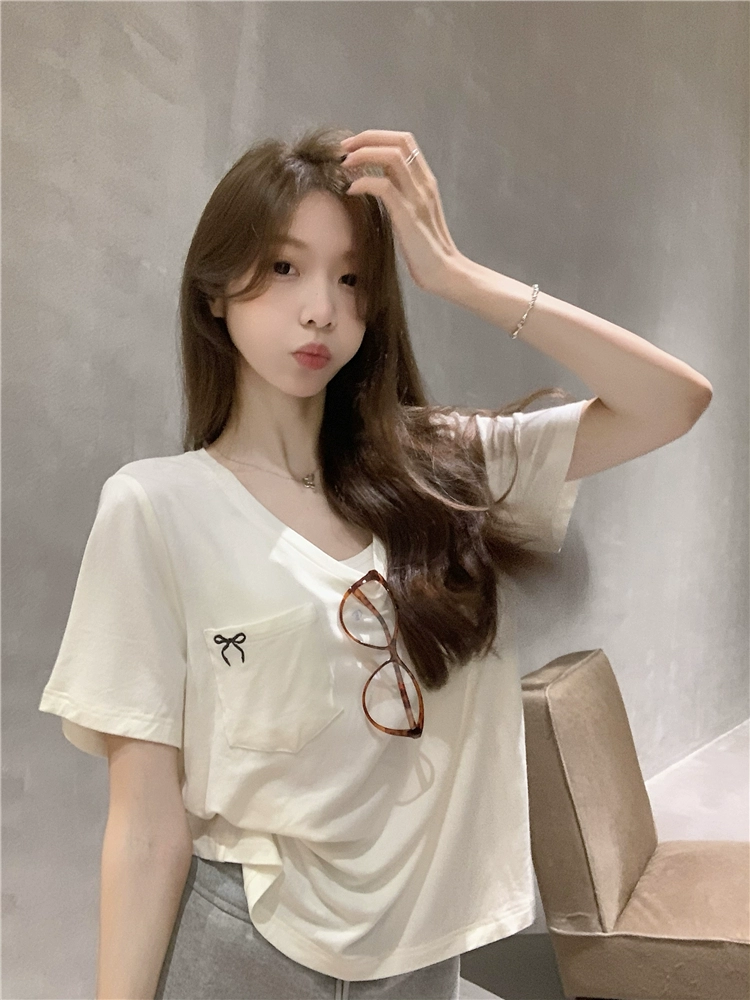 فيونكة نسائية صيفية فضفاضة كاجوال بكتف أمامي مطرزة