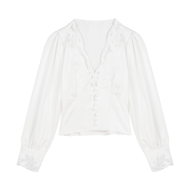 غرز الدانتيل الخامس -قميص ساتان على غرار الأكمام الطويلة