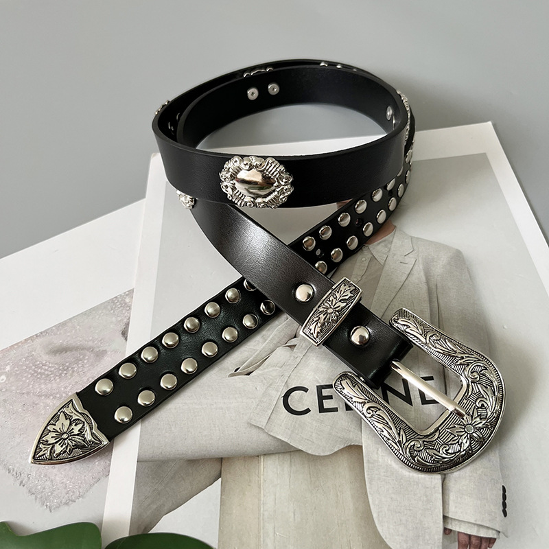 Y2g فتاة ساخنة مقعرة الرجعية منحوتة مشبك أسلوب فاسق برشام السراويل الجلدية الزخرفية حزام حزام حزام الرجال والنساء الموضة