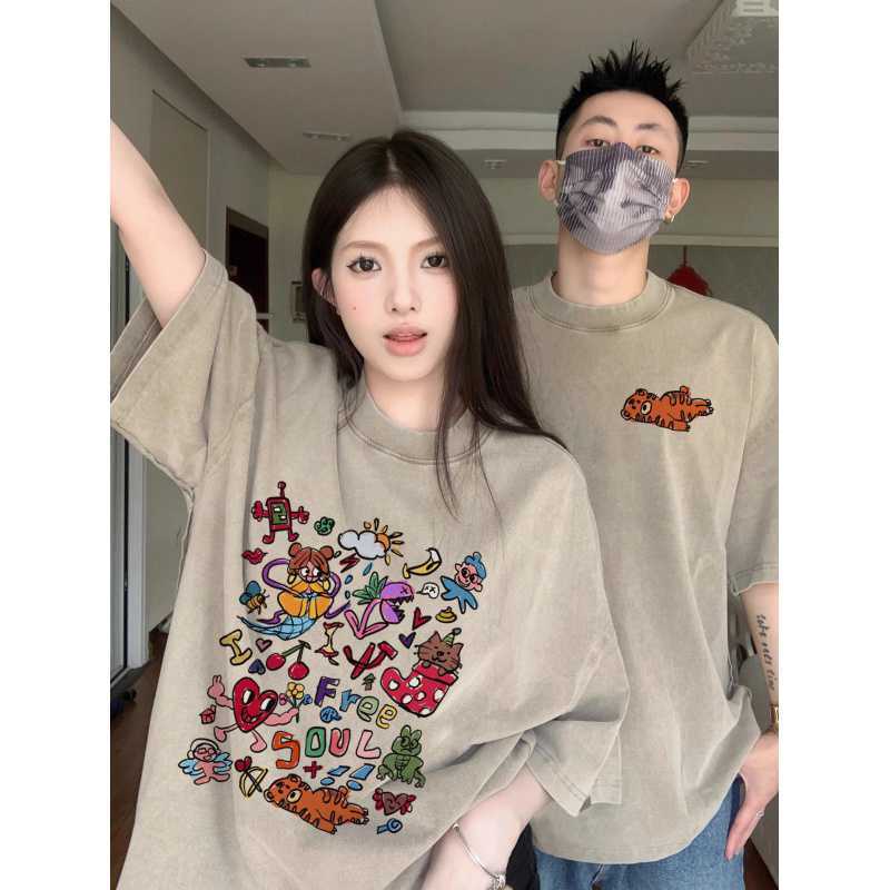 الربيع والخريف جديد بارد الملح فتاة الأزياء المقلية الشارع التعادل صبغ زوجين سترة الدنيم كسول نمط فضفاض أعلى