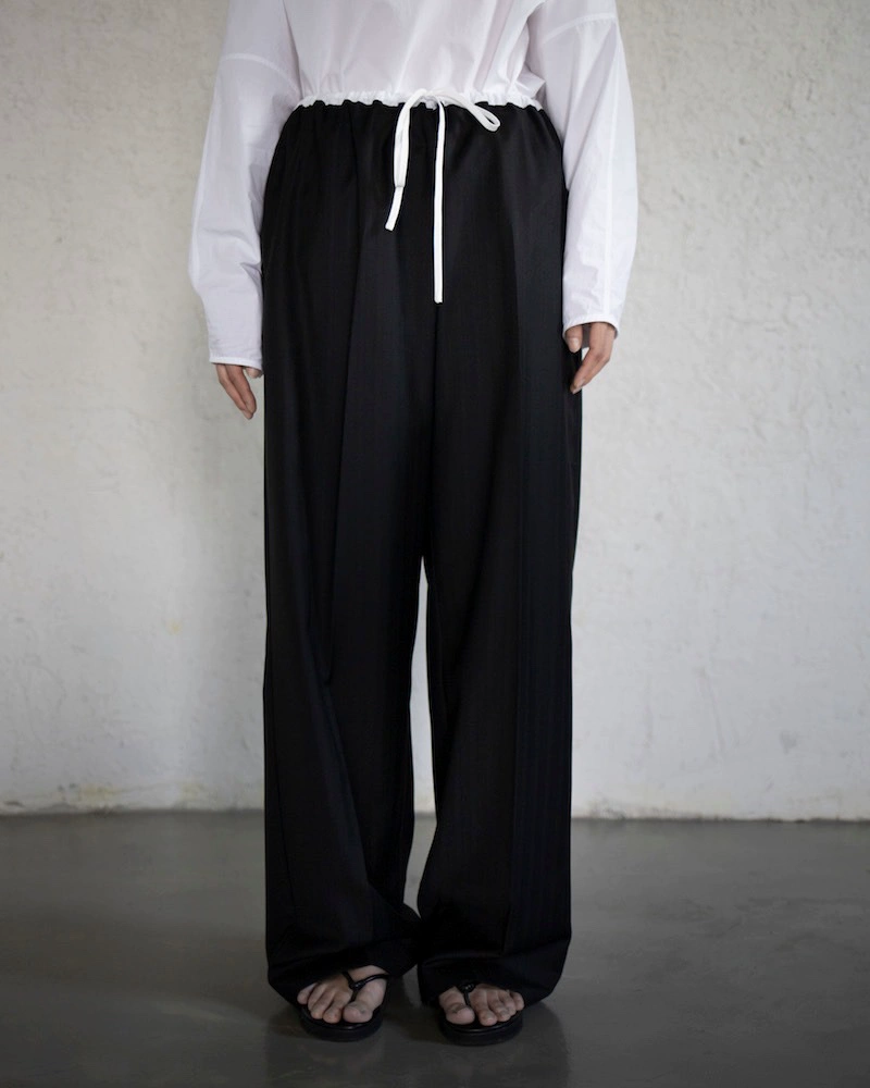 على ربطة الدفق السوداء والأبيض المخصصة سراويل مستقيمة غير رسمية
