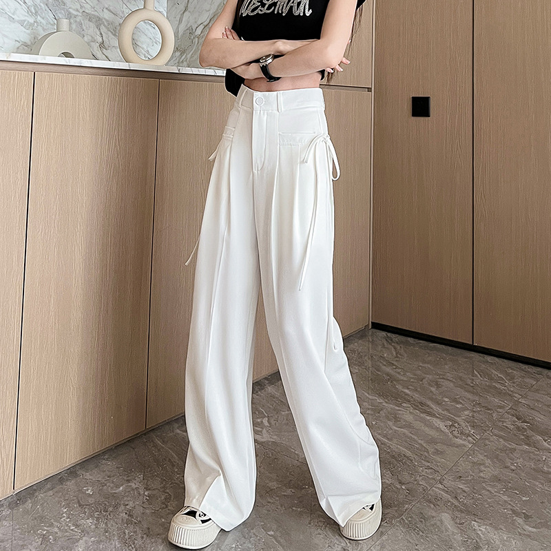 بدلة صيفية جديدة لعام 2024 من Real Shot بناطيل أطفال عالية الخصر ثنيات واسعة الساق مستقيمة