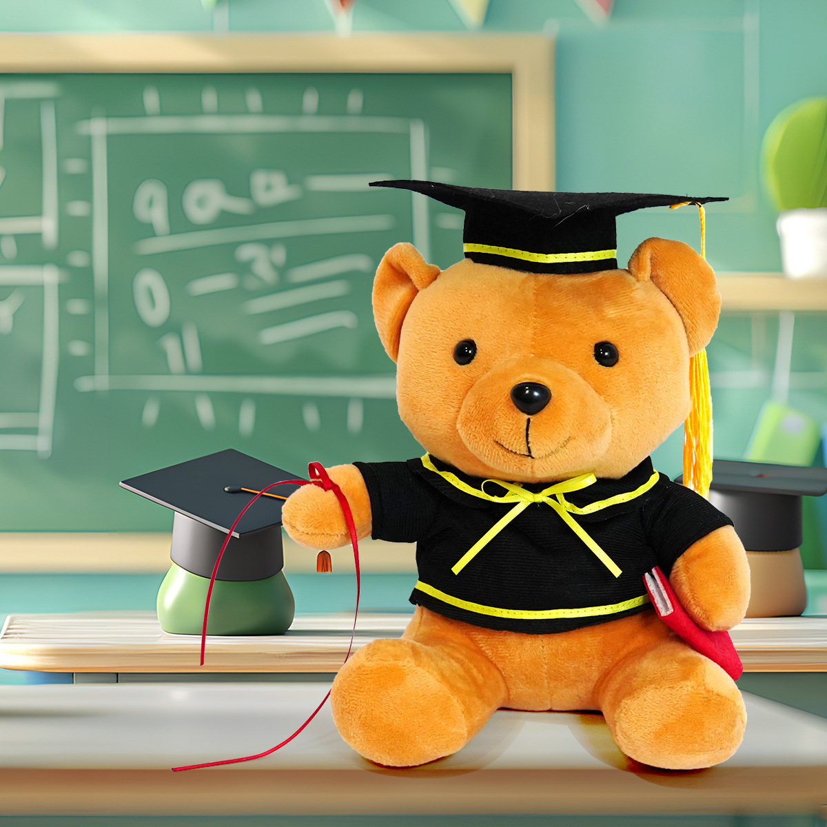 دمية دب التخرج هدية تذكارية للطبيب الدب القطيفة لعبة احتفال المدرسة يرتدي قبعة الطبيب البكالوريوس