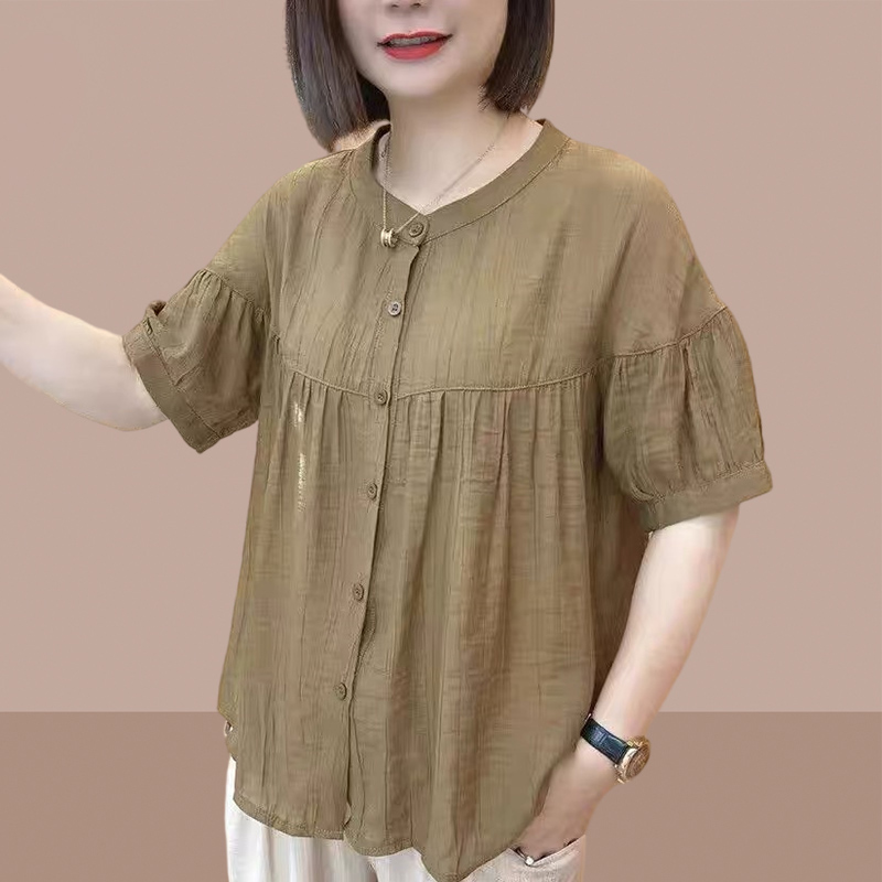 صيف 2024 قميص نسائي جديد بأكمام قصيرة ملابس نسائية في منتصف العمر وكبار السن ملابس نسائية على الطراز الغربي للحد من العمر بلوزة فضفاضة مقاس كبير