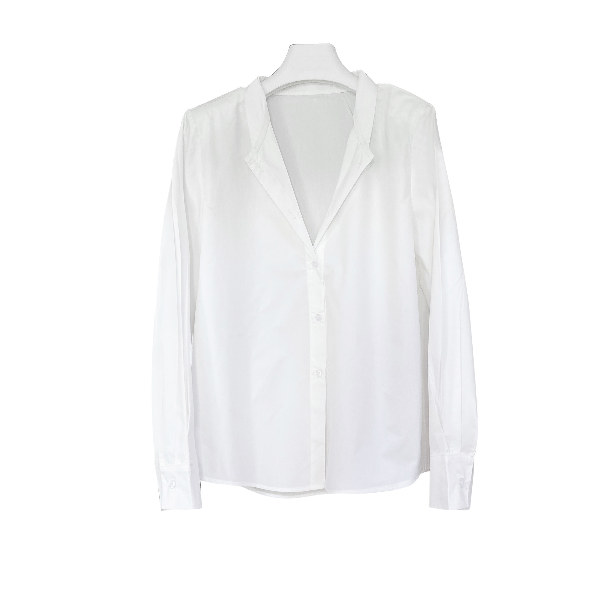 صيف 2024 قميص جينز تشاو لوسي الجديد غير رسمي فضفاض بياقة على شكل حرف V وأكمام طويلة باللون الأبيض