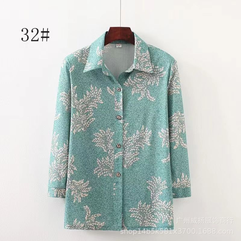 الربيع والصيف 2024 جديد منتصف العمر وكبار السن قميص النمط الغربي الأم المرأة سترة الجليد الحرير Lel كم طويل تي شيرت