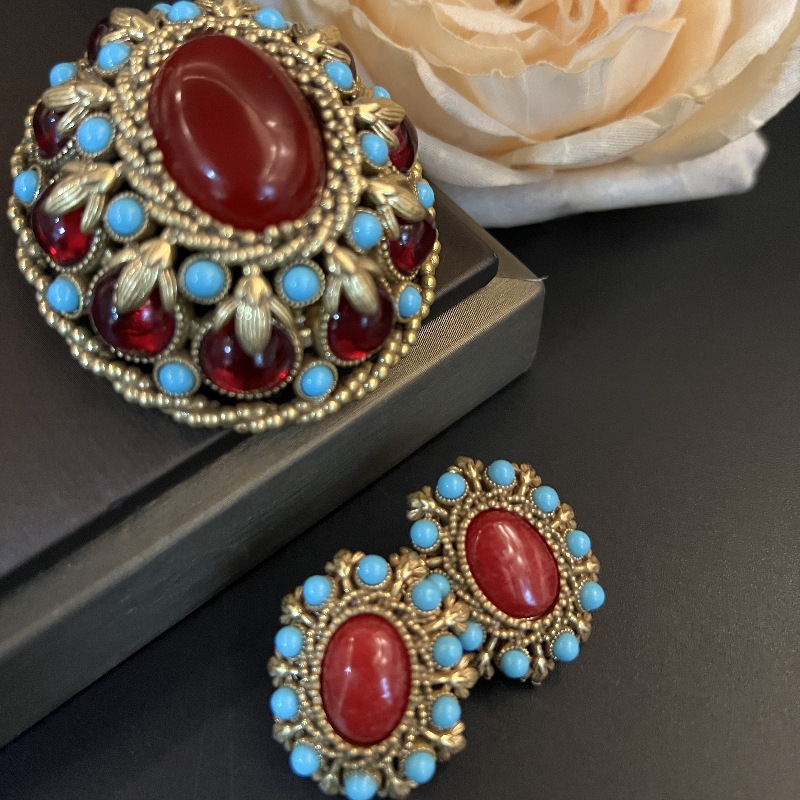 بروش عتيق مرصع بالصناعات الثقيلة من العصور الوسطى وأقراط وإكسسوارات أزياء راقية