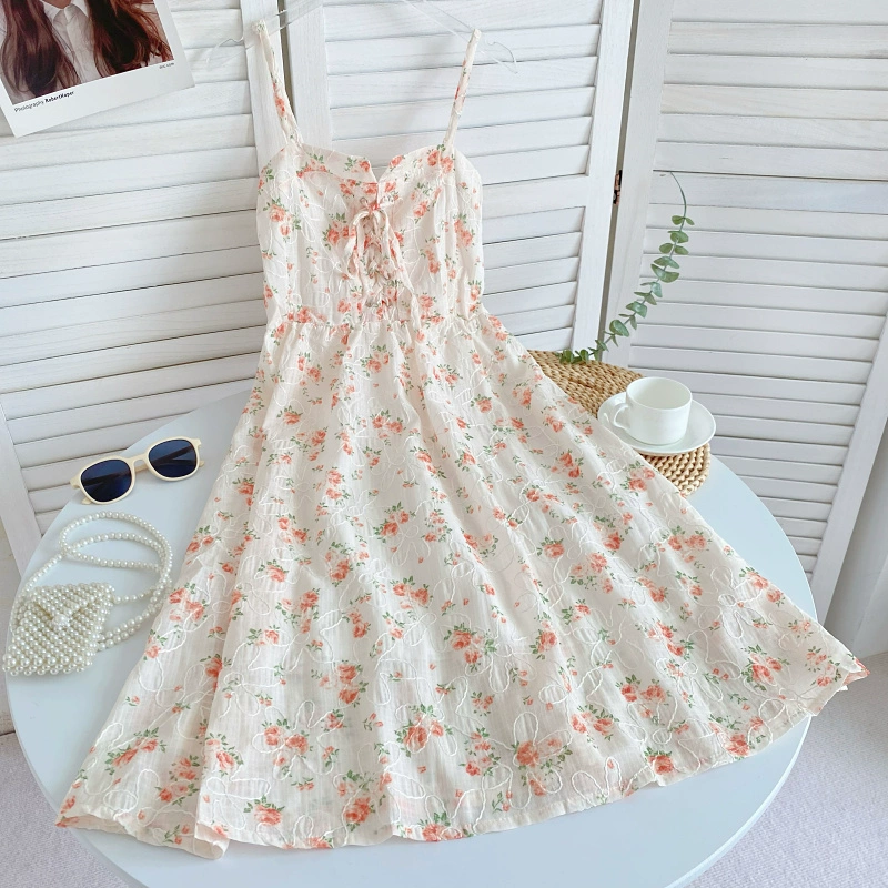تنورة صغيرة من الأزهار الطازجة تنورة الإناث الصيف الفرنسي -على غرار الساحس الساحلي العطلات حزام خصر العمود الفقري رقيقة الفستان