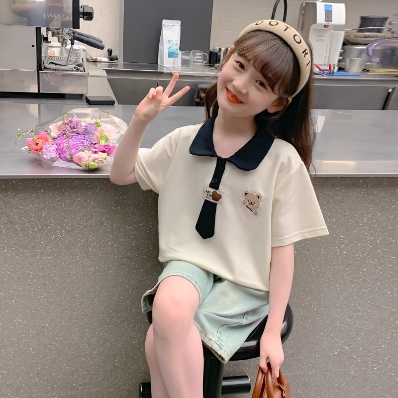 الفتيات الصيف قصيرة الأكمام تي شيرت 2024 نمط جديد عصري للأطفال نصف كم قميص الفتيات الصيف قميص بولو