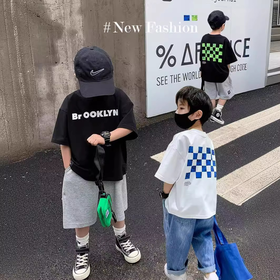تي شيرت للأطفال بأكمام قصيرة لصيف 2024 ملابس جديدة للأولاد على الطراز الكوري ملابس أطفال غير رسمية نصف كم على الطراز الغربي T