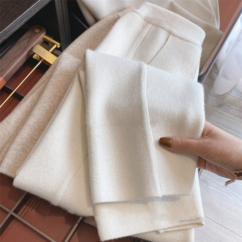 جديد ربيع وخريف 2023 سراويل فضفاضة مستقيمة واسعة الساق على الإنترنت مشهورة غير رسمية بيضاء محبوكة فجل الجدة سراويل نسائية على الموضة