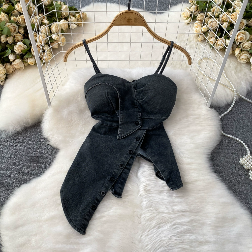نقي الدنيم غير منتظم للنساء الزخرفية القصيرة القصيرة الأنبوب القصيرة