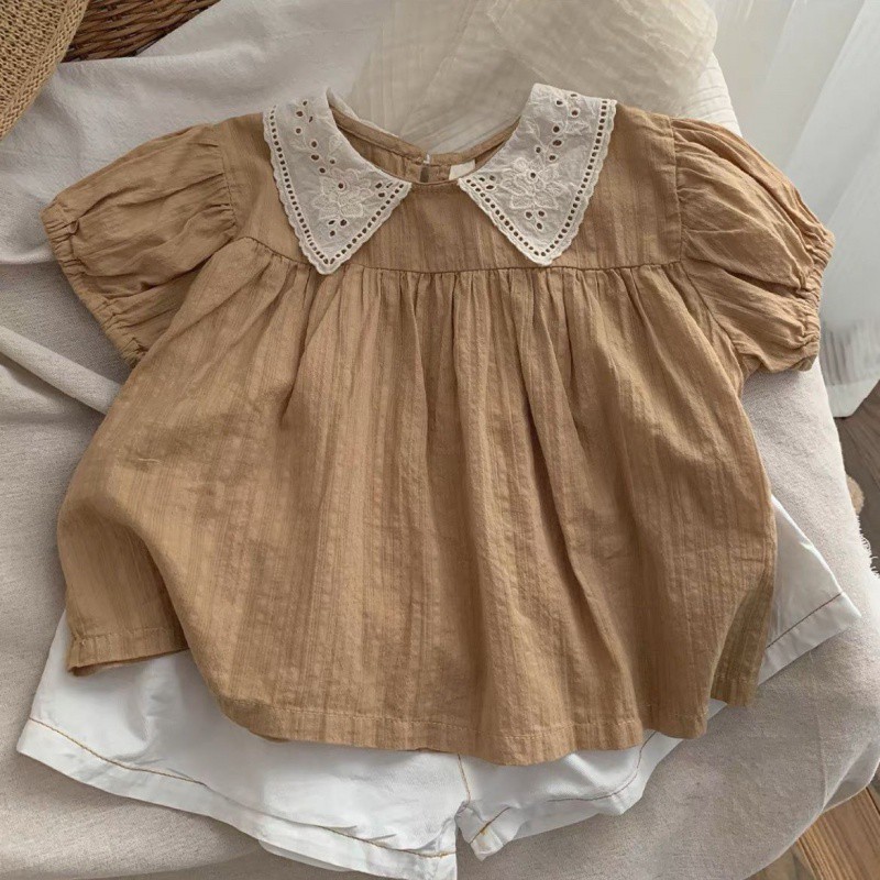 قميص دمية بناتي صيفي رقيق بنمط كوري، قميص عصري بنمط موري للفتيات الصغيرات بأكمام قصيرة، فضفاض بنمط الأميرة، توب عصري