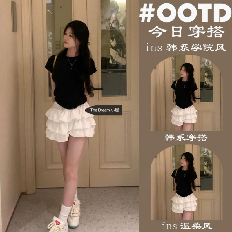 تنورة منتفخة من قطعتين وقميص قصير الأكمام مع حب أول