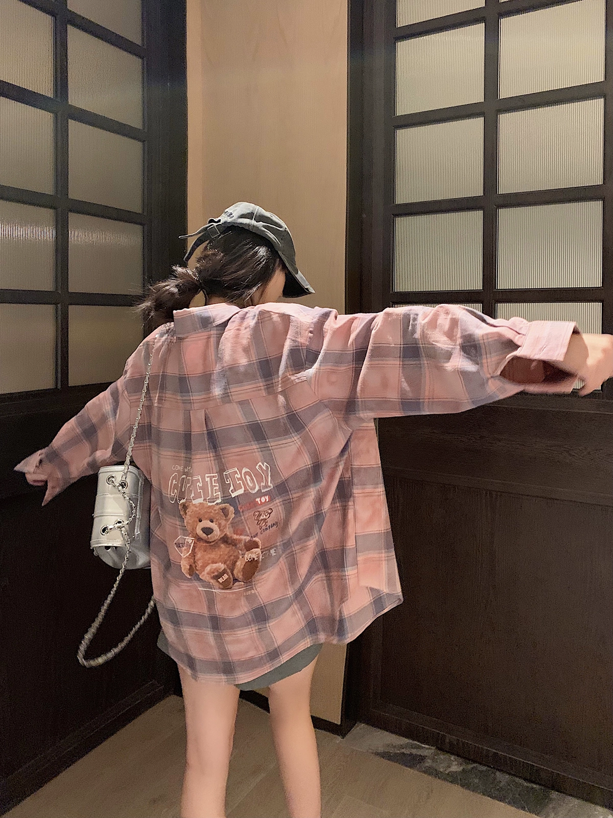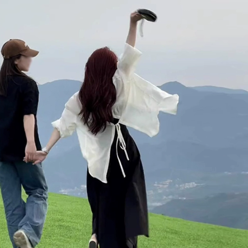 قميص شيفون شفاف للحماية من الشمس بفتحة ايوسل وفضفاض قليلاً