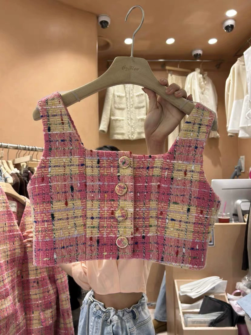 سترة منقوشة بأزرار وياقة مربعة من Xiaoxiangfeng Dongdamen
