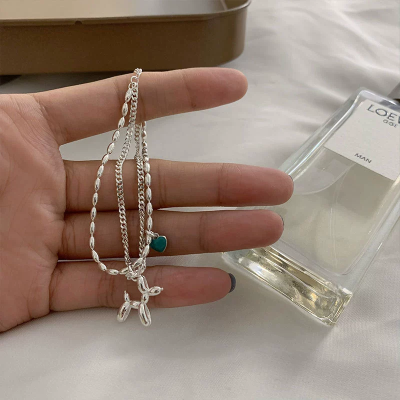 النسخة الكورية من S925 Silver Double -Llayer Ball Ball Puppy Bracelet Women Retro Fashion Tempera