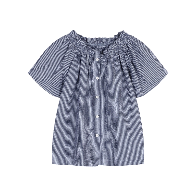قميص كوميكومي أزرق واسع الساق كاجوال مخطط