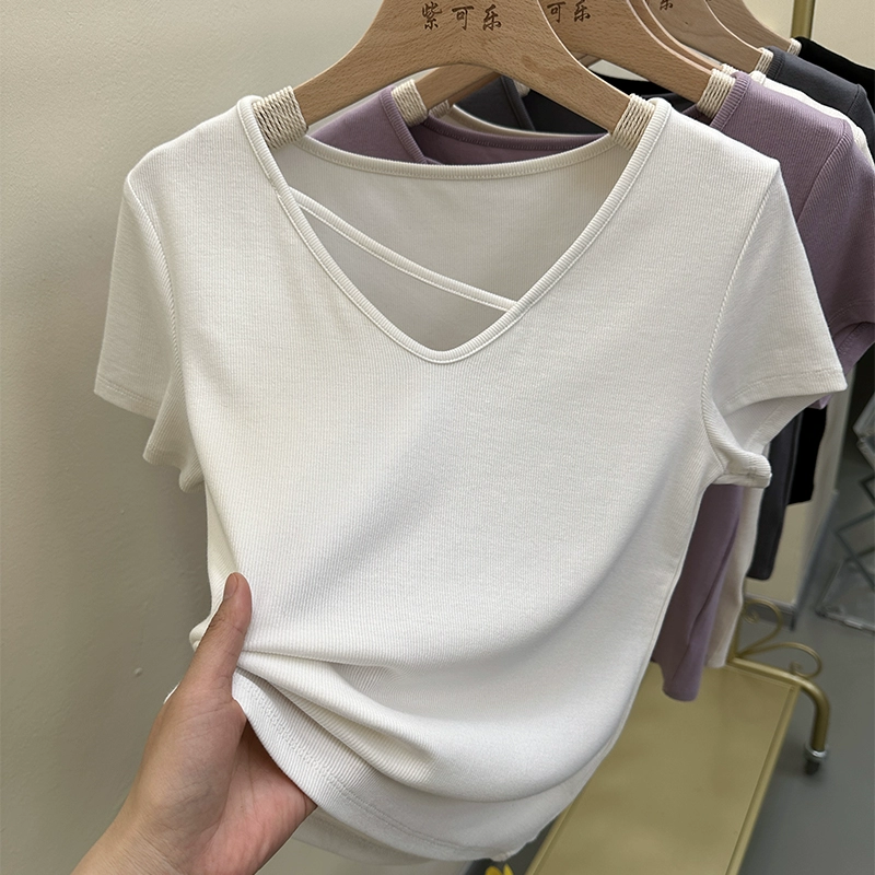 تي شيرت صيفي جديد بأكمام قصيرة ورقبة على شكل حرف V للسيدات، تصميم سري، لون خالص، متعدد الاستخدامات، قميص تنحيف، قميص سفلي