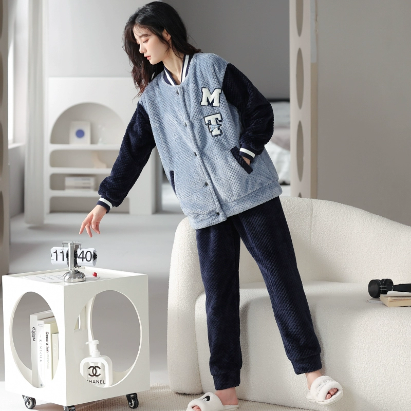 بيجامة ملابس منزلية شتوية سميكة من الفلانيل مع إضافات ملونة