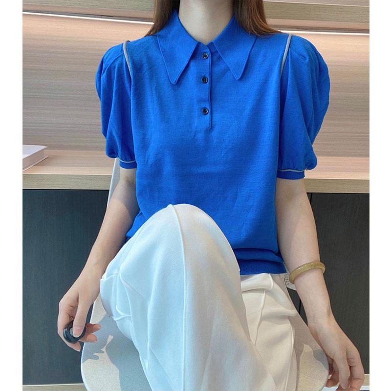 تي شيرت T Counter Shopping Mall يسحب الخط الأول للتصدير، قائمة الذيل، تي شيرت نسائي بألوان متباينة، حافة فقاعية، رقبة بولو، لون سادة