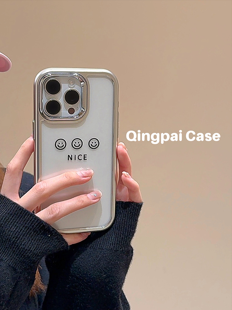 خفيف الوزن وشفاف مطلي بالكهرباء مبتسم إنجليزي مناسب لحافظة الهاتف المحمول Apple 15promax iphone13 الجديدة 14pro للسيدات 12 شخصية فضية بسيطة ذات ملمس راقي ومتعددة الاستخدامات وشاملة