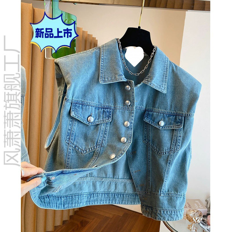 صيف جديد نمط مشبك سبليت تصميم تحسس المرأة المتخصصة سترة دينم المرأة قصيرة أكمام وسادة الكتف سترة الحد من العمر