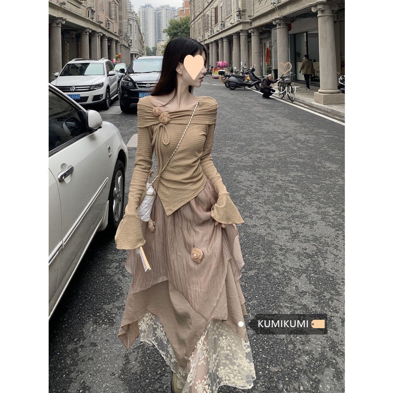 بدلة أنيقة للسيدات بتصميم خريفي بقصة ضيقة على الكتف تنورة غير منتظمة للجو مكونة من قطعتين مجموعة عصرية